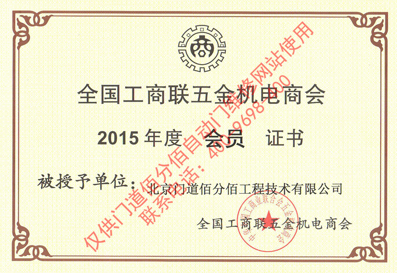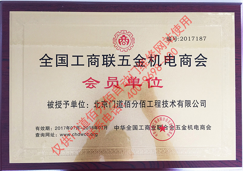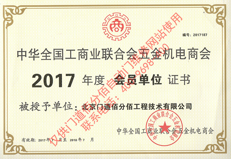 2017年門道佰分佰工商聯(lián)會員單位證書