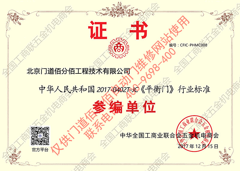 門窗直購網(wǎng)授權(quán)門道佰分佰為指定售后服務(wù)公司證書